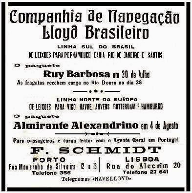 O Ruy Barbosa zarpara de Hamburgo, com escalas em Roterdão, Antuérpia (Anvers), Le Havre e, por fim, Vigo, a última antes de Leixões, onde o aguardavam cerca de 240 pessoas para embarcar.